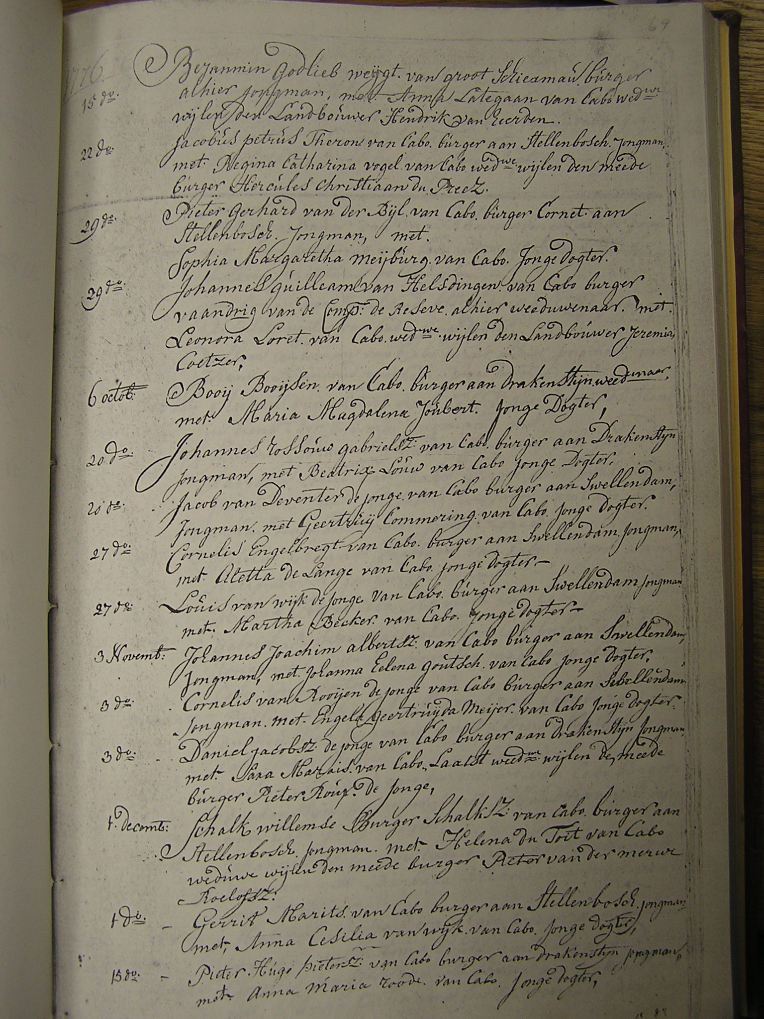 In 1755 het Rijk Tulbagh die Prag-en-Praal wette geimplementeer om swierigheid onder die Kaapse inwoners te beperk. Dit was ook die jaar waarin ‘n baie ernstige pokke epidemie meer as ‘n 5de van die Blanke bevolking aan die Kaap uitgewis het.