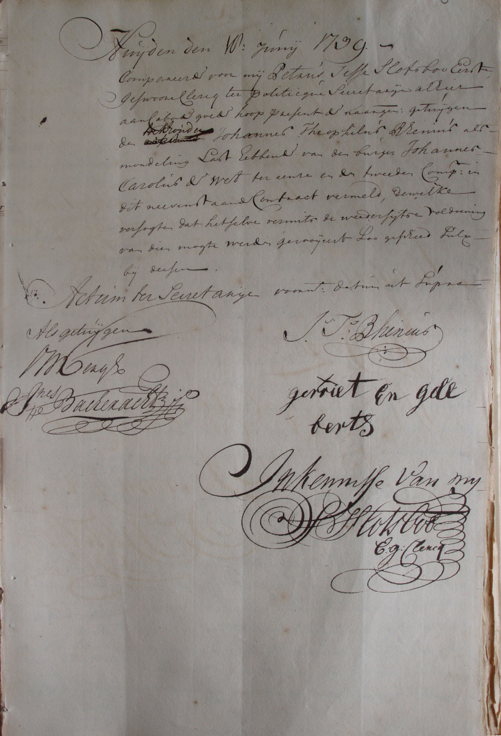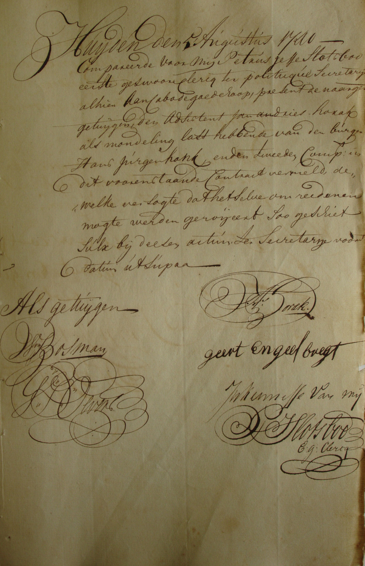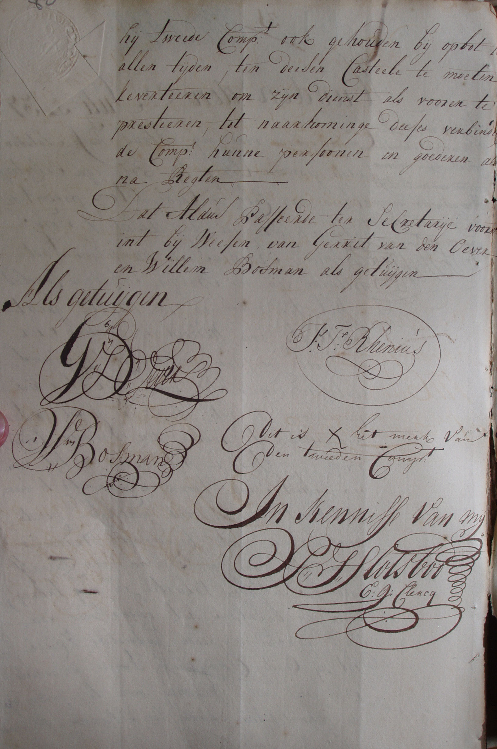 Geeft met verschuldigde Eerbied te kennen Uwer wel Edele gestr: en E: Agtb: onderdaanigen dienaar Geurt Engelberts van Noorden A0 1733 voor matroos @ fl 9 per maand hier gekoomen en op den 26 Februarij 1737 onder zijn loopend verband aangesteld tot wagenrijder met Riksdaalders 12 maandelijx, hoe hij Suppl. vermeend onder Godes Zeegen genoegsaam in staat te zijn, omme zig alhier, met desselfs ambagt van Huijs timmerman buijten den dienst der E: Comp. op een eerlijke en betaamlijke wijze te kunnen erneeren, derhalven neemt den suppl. de vrijheid zig te wenden tot Uwe Wel Edele Gestr: en E: Agtb: met needrig versoek dat het deselve behaagen mag hem uijt E. Comps dienst te ontslaan, en met het Burgerregt deeser plaatse te begunstigen.