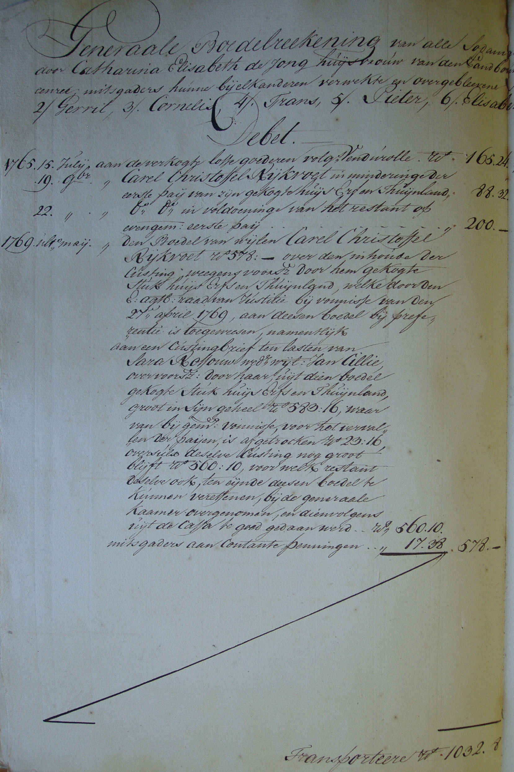 Geurt se vrou is iewers gedurende 1765 oorlede aangesien die vendusie van haar persoonlike goedere plaasvind op 15 Julie 1765. Dit is interessant om na die artikels in die vendusierol te kyk. Die groot hoeveelheid timmermansgereedskap wat Geurt terug gekoop het uit die boedel is insiggewend. So ook die feit dat die babawiegie nie teruggekoop is nie. Hulle jongste kind is gebore ongeveer een jaar voor Catharina Elizabeth oorlede is. Dit laat die vermoede ontstaan dat die jongste (Martha) kind dus as baba moes gesterf het. Dit laat Geurt met ten minste 8 kinders wie se ouderdomme wissel tussen 5 en 19 jaar wat hy moes grootmaak sonder die hulp van sy moeder of skoonmoeder.