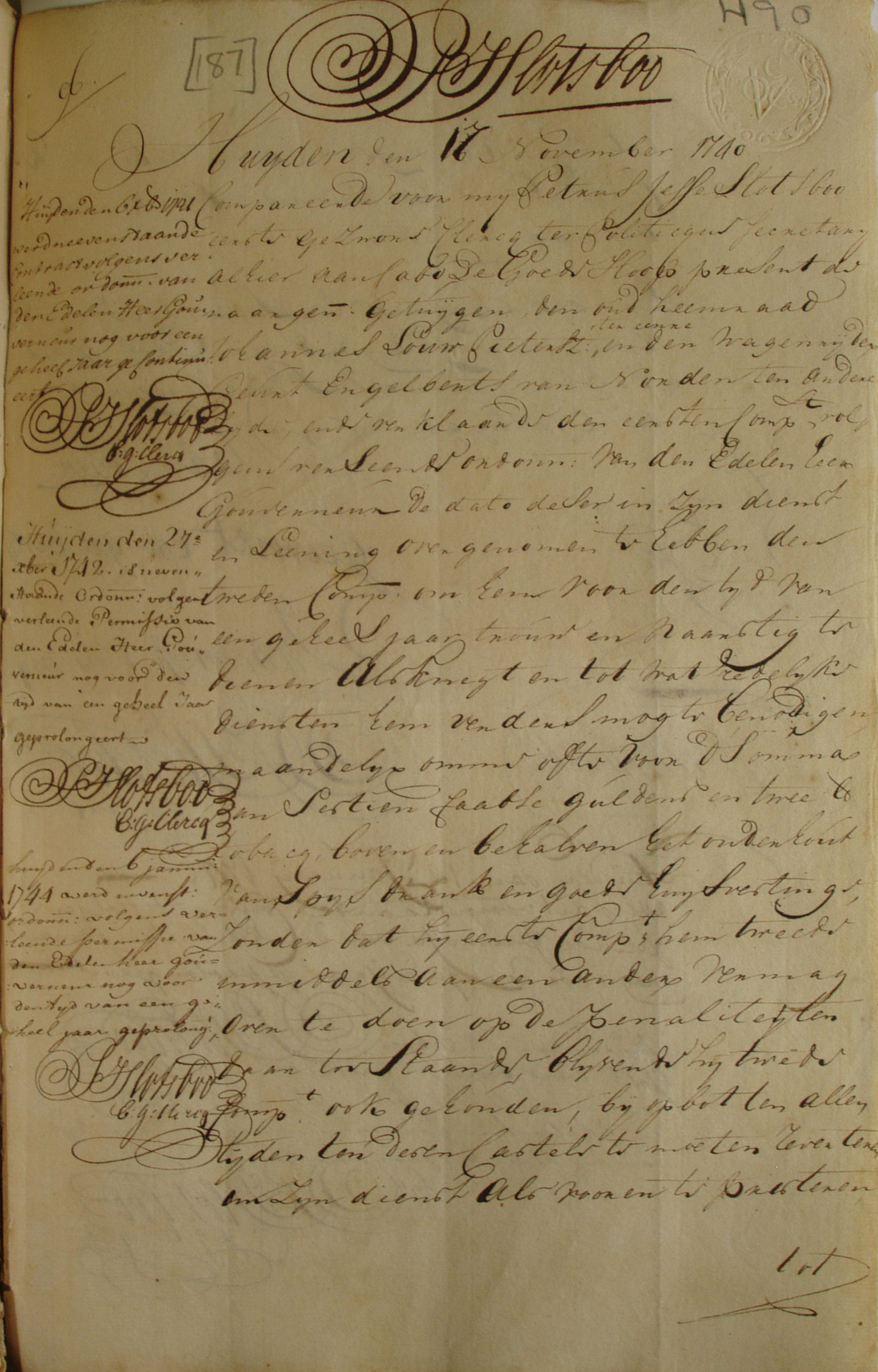 Vanaf 18 Junie 1739 werk hy onder kontrak vir Hans Jurgen HONK onder dieselfde voorwaardes, ook aangedui as kneg.