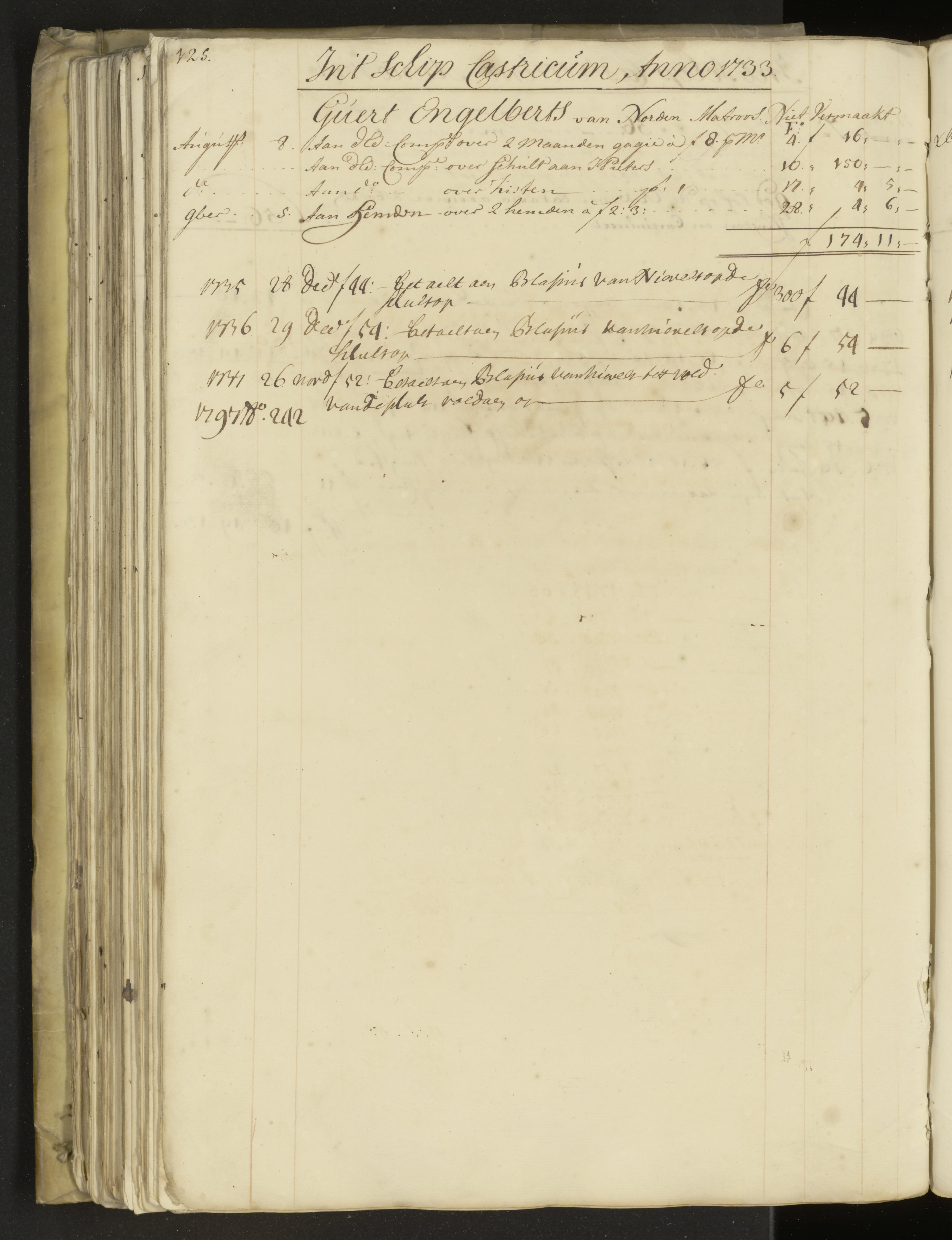 Teen 8 Augustus 1733 vind ons Geurt dan aan boord die VOC Spiegelretourschip Castricum as ‘n matroos met baie skuld en teen ‘n vergoeding van 8 Gulde per maand (vergelyk dit met sy totale skuld van 174 Gulde en 11 stuivers). Op hierdie eerste dag koop hy dan ook ‘n skeepskis aan op skuld en op 5 November koop hy 2 hempde.