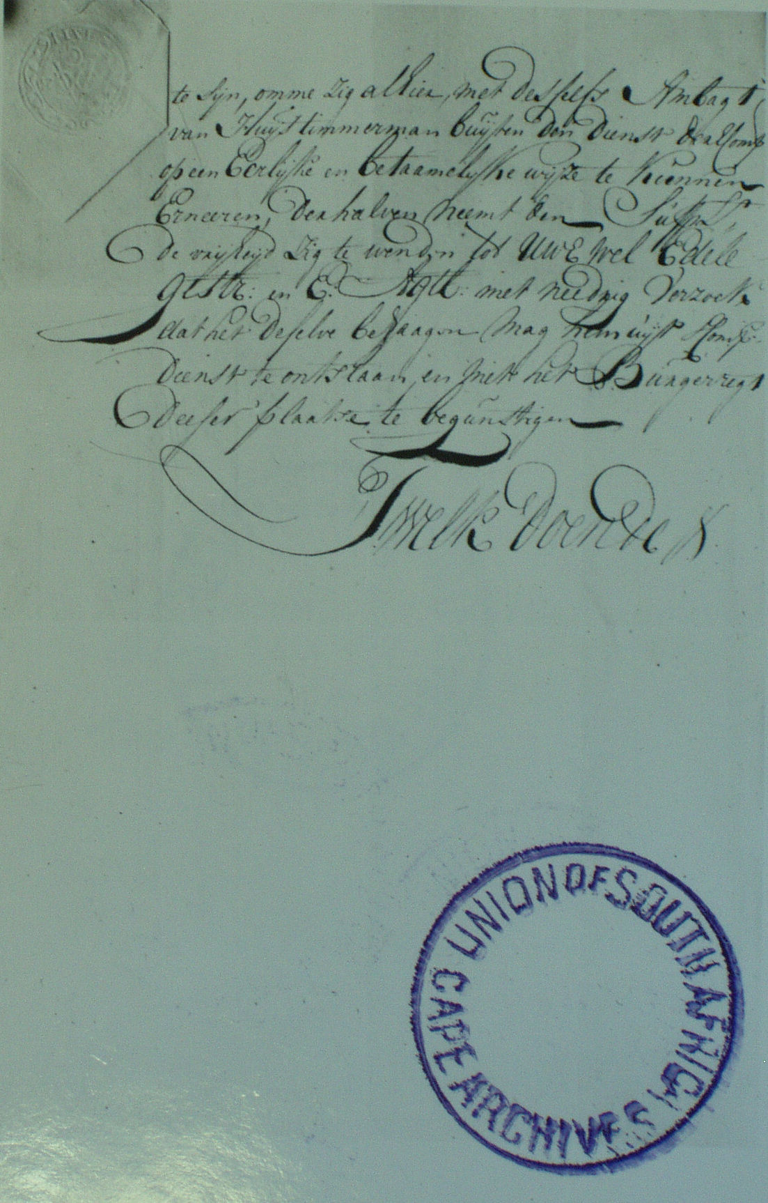 Volgens 'n inskrywing in die skeepsoldyboek het Geurt Vryburgerskap ontvang op 27 April 1756.